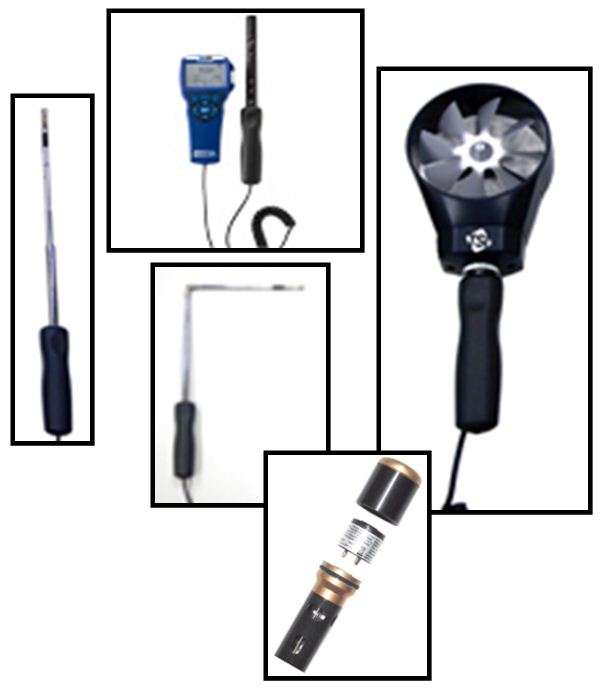 Φορητά θερμικά ανεμόμετρα πολλαπλών παραμέτρων, κατάλληλο για την μέτρηση σε στόμια, κανάλια κλιματισμού κλπ. Εύχρηστο και απλό όργανο με πτυσσόμενο λήπτη έως περίπου 1 m. Λειτουργία για πολλές ώρες με 4 ΑΑ μπαταρίες. Το μοντέλο 9565 μετρά ταυτόχρονα την ταχύτητα, την θερμοκρασία και την υγρασία, με πτυσσόμενο ή σπαστό δειγματολήπτη (straight – articulated probes). Επίσης μπορεί να μετρήσει την πίεση με χρήση σωλήνων pitot, υπολογισμός θερμοκρασίας υγρού βολβού και σημείου δρόσου, παροχής, υπολογισμός θερμικού φορτίου και στατιστικά. Διαθέτει μνήμες και δυνατότητα datalogging και συνοδεύεται από λογισμικό και καλώδιο για H/Y. Προαιρετικά μπορούν να τοποθετηθούν επιπλέον λήπτες για την μέτρηση των CO, CO2, VOCs καθώς και ανεμόμετρο προπέλας και θερμοκρασία επιφανειών.